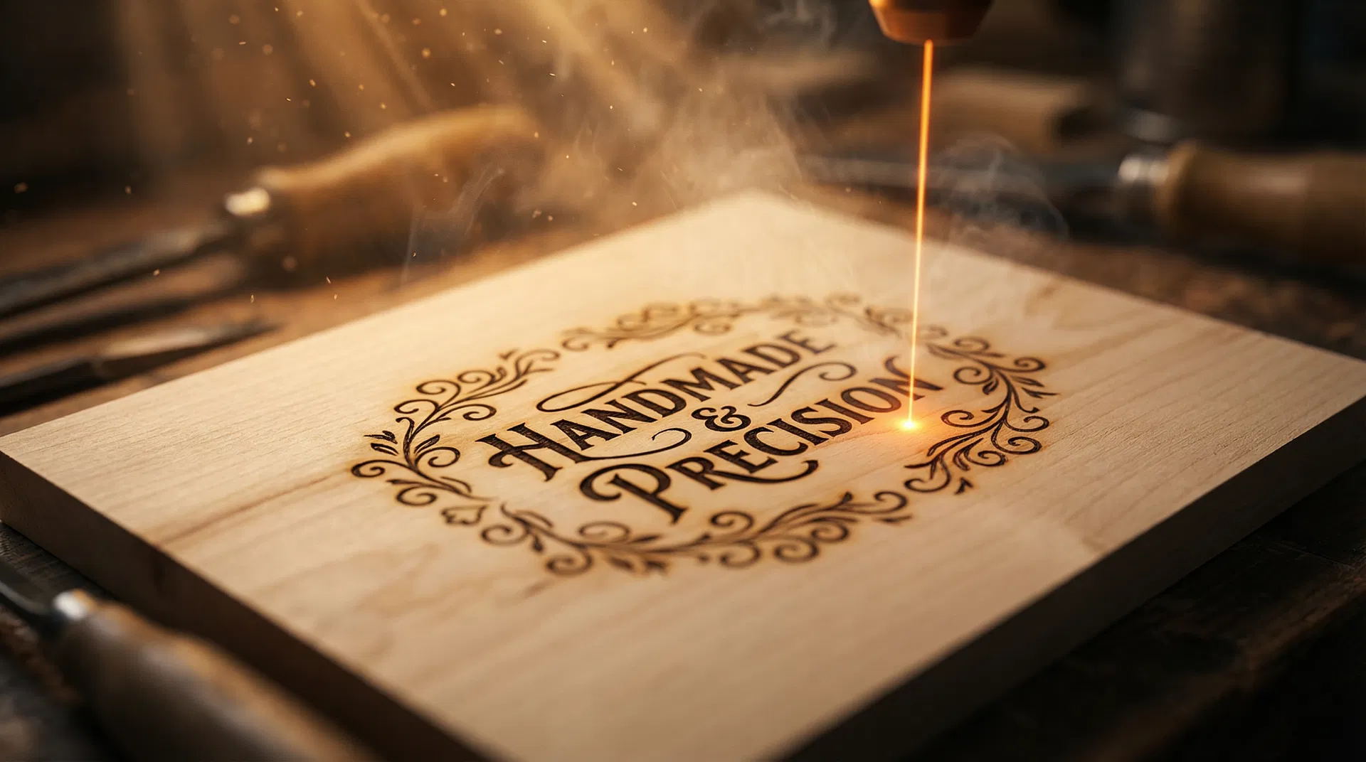 Precision laser engraving of names, logos, dates, quotes, or artwork onto wood items. Clean, sharp, and highly detailed for lasting impressions.